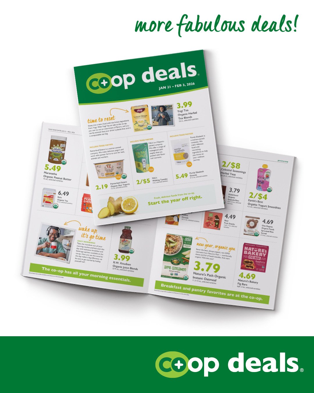 To continually provide you with better prices, we’ve teamed up with Co-ops around the country to bring you the Co-op Deals Program. This program enables our store buyers to bring you the best prices on natural foods through a national joint purchasing program. Be sure to check out the flyers in the store for the latest deals. They are on a two week rotation, so pick up the latest flyer in the store or click the links below!
